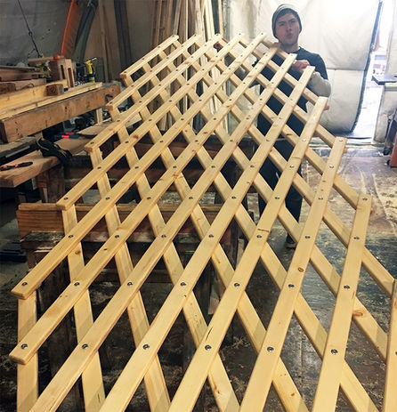The Nomad Shelter lattice wall is a key structural element to our yurts. We use larger dimensions for our lattice and tension cables than most commercial yurts to make ours strong enough to handle wind and snow . The Nomad Shelter lattice is structurally engineered to support up to 60 lbs per square foot snow loads and 100 mph wind resistance.
